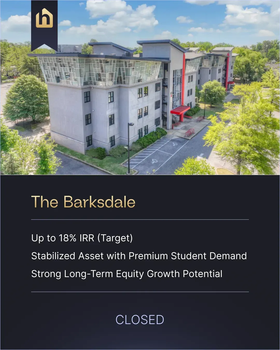 Our investors enjoy passive cash flow through quarterly distributions and significant capital gains upon the eventual refinance or sale of the asset.